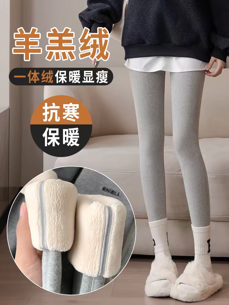 加绒打底裤女外穿秋冬款绒裤秋裤2025新款冬季加厚羊羔绒保暖棉裤